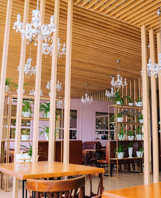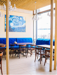View the interiorVan Gogh Restaurant has panoramic windows and unique interior design. The hall is equipped with projector that is available for watching films and online broadcasts.